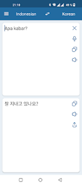 De Koreaan-Indonesische Vertaler is een gratis applicatie die gebruikers in staat stelt om snel en nauwkeurig te vertalen tussen het Koreaans en het Indonesisch. Deze app is ideaal voor studenten, reizigers en professionals die behoefte hebben aan een betrouwbare vertaaltool. Een opvallende functie is de offline vertaalmodus, waardoor gebruikers geen internetverbinding nodig hebben om vertalingen uit te voeren. De app ondersteunt ook spraakherkenning en biedt steminvoer, wat het voeren van natuurlijke gesprekken vergemakkelijkt.
